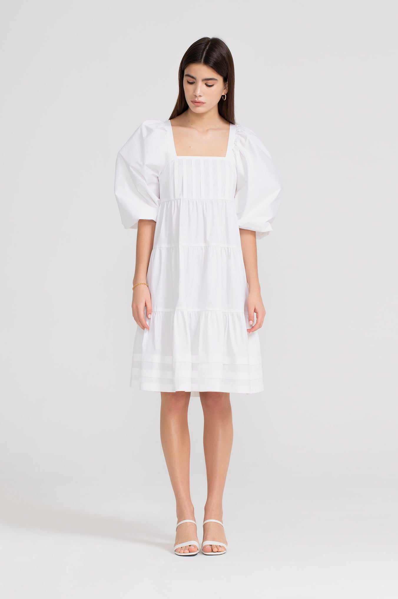 Lily Dress - a breezy summer essential with charming puff sleeves fastened, a multi-tiered skirt, and playful bows at the back, perfect for effortless style and comfort on warm days.